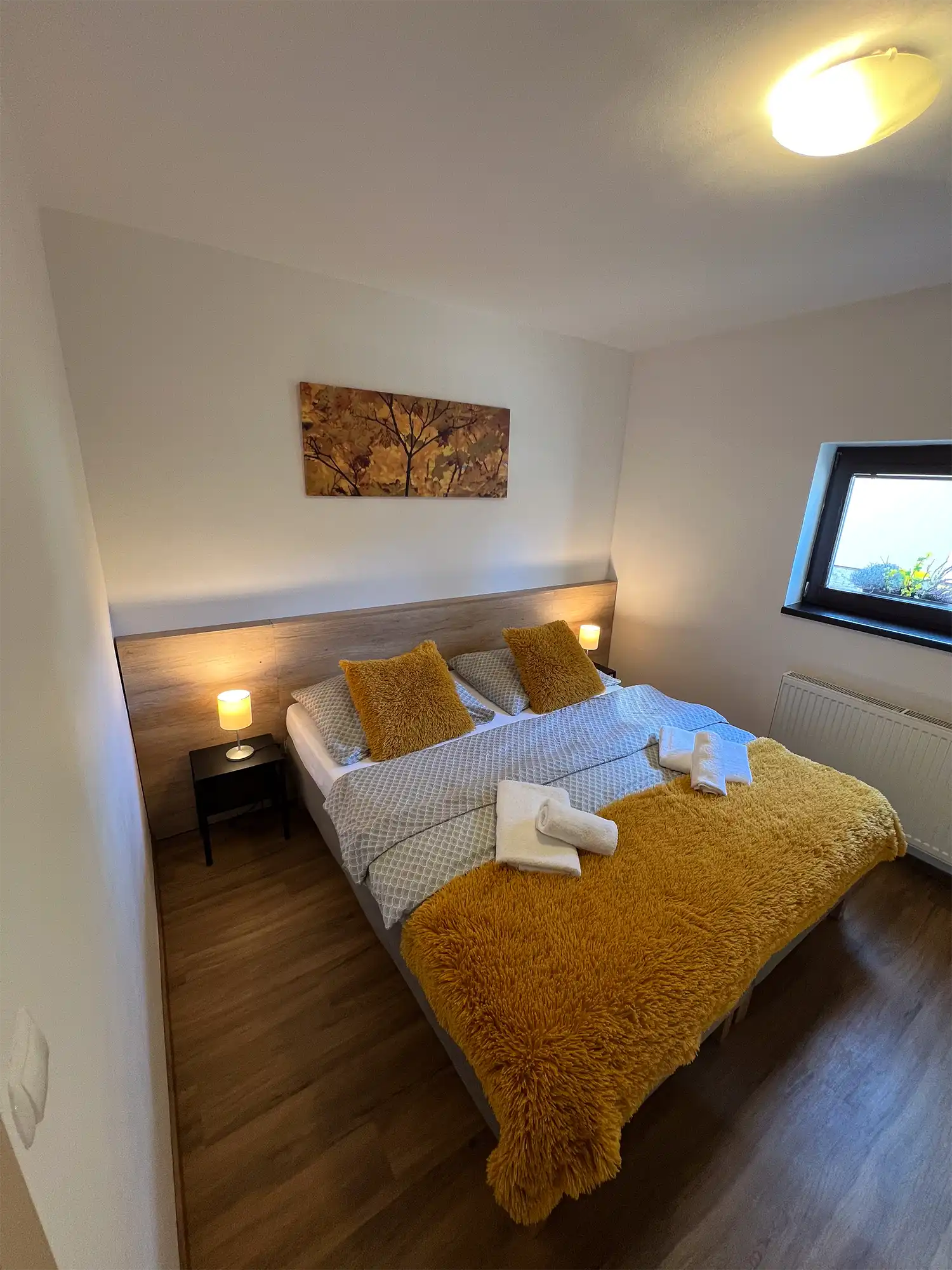Apartmán je ideální pro páry a rodiny, s kapacitou 2+2 osoby díky rozkládací pohovce v obývacím pokoji. Dřevěné podlahy, přírodní motivy a moderní design vytvářejí harmonický prostor, který si zamilujete.
